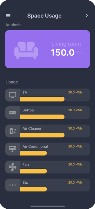 구역을 공간별로 세분화, 그에 따른 데이터 값을 사용자에게 보여주고 기존의 IOT기반 어플과 차별화 한다.