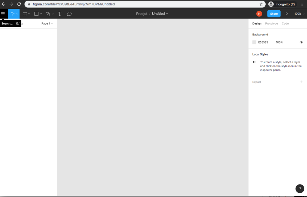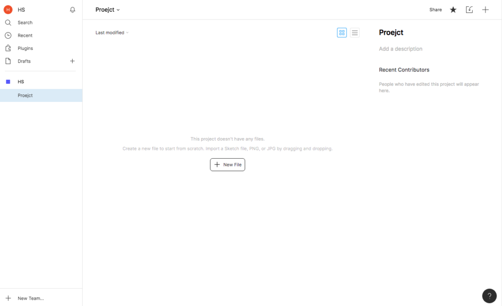 이제 New File 버튼을 눌러 실제 디자인 파일을 만들 수 있다. 앞서 밝힌 바와 같이 특정 프로젝트에 속하는 파일을 만드는 것이 아닌 당장 파일을 만드는 것이 목표일 때는 좌측 Drafts의 ‘+’ 버튼을 눌러 새로운 파일을 만들 수 있다.