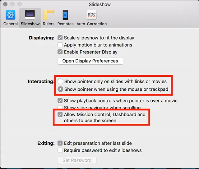 탭 메뉴에서 Slideshow > Interacting 항목 중에 아래와 같은 메시지를 확인하고 액세스를 허용