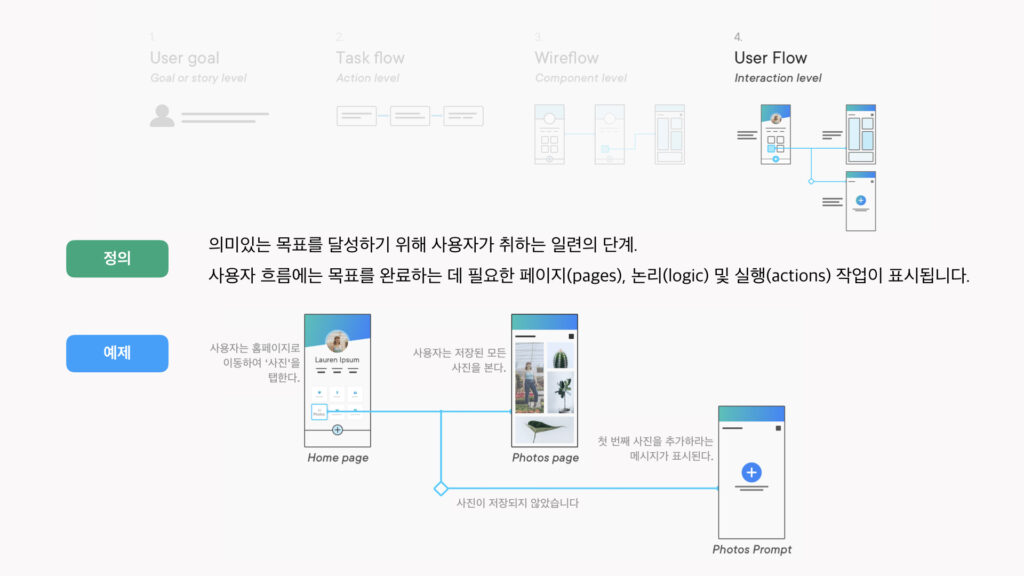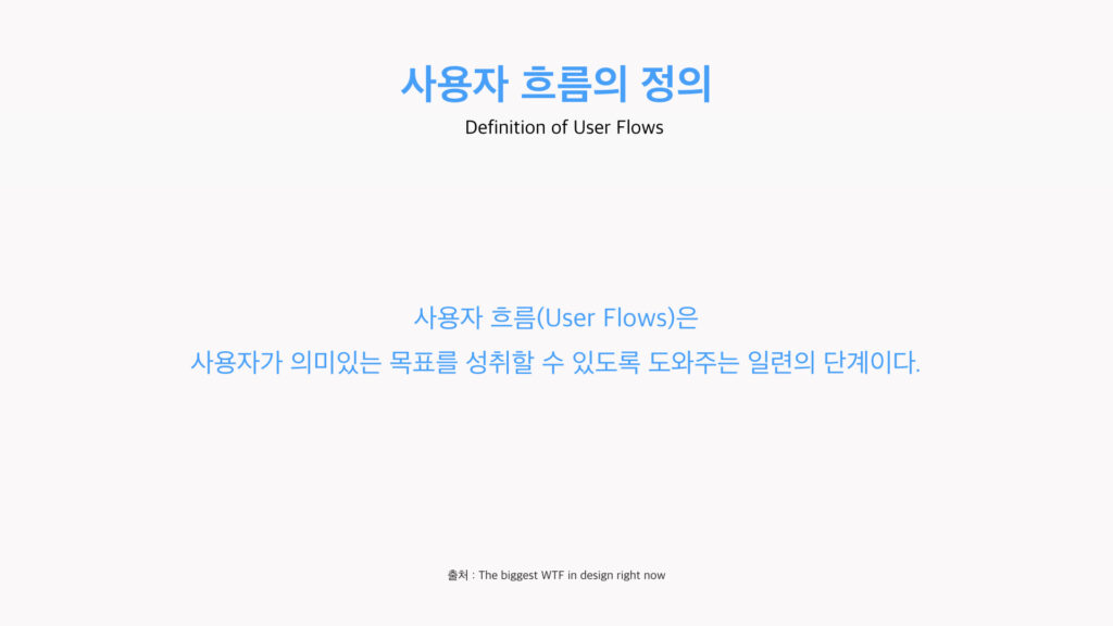 사용자 흐름(User Flows)은 사용자가 의미 있는 목표를 성취할 수 있도록 도와주는 일련의 단계이다.