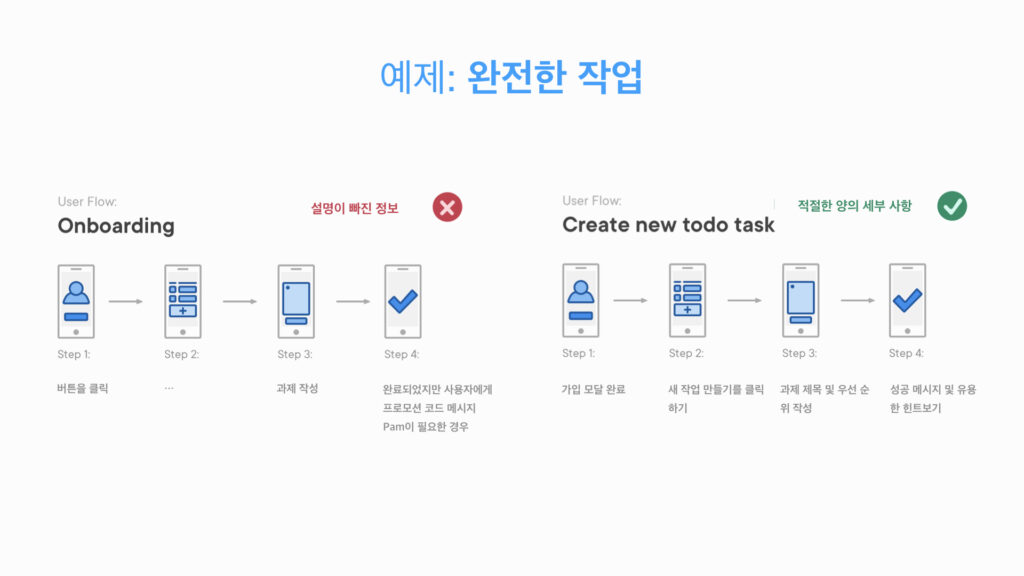 - User Flows은 완전한 작업을 나타낸다.
