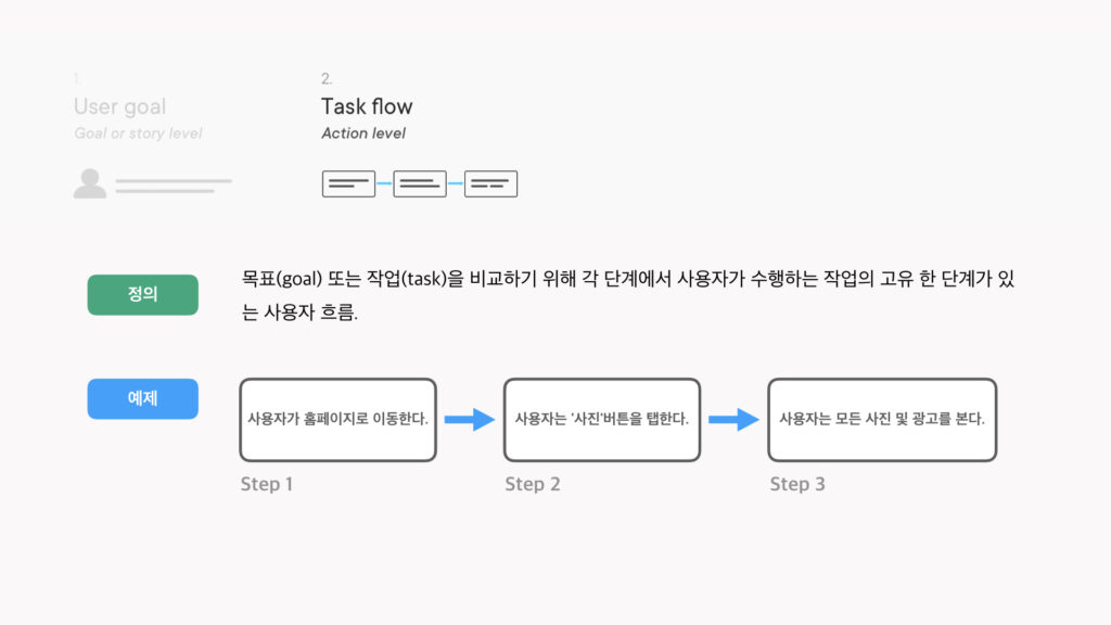 Goal or story level(목표 또는 스토리 수준) - Task flow(작업 흐름)