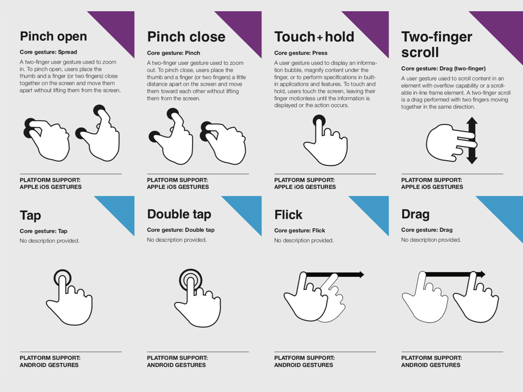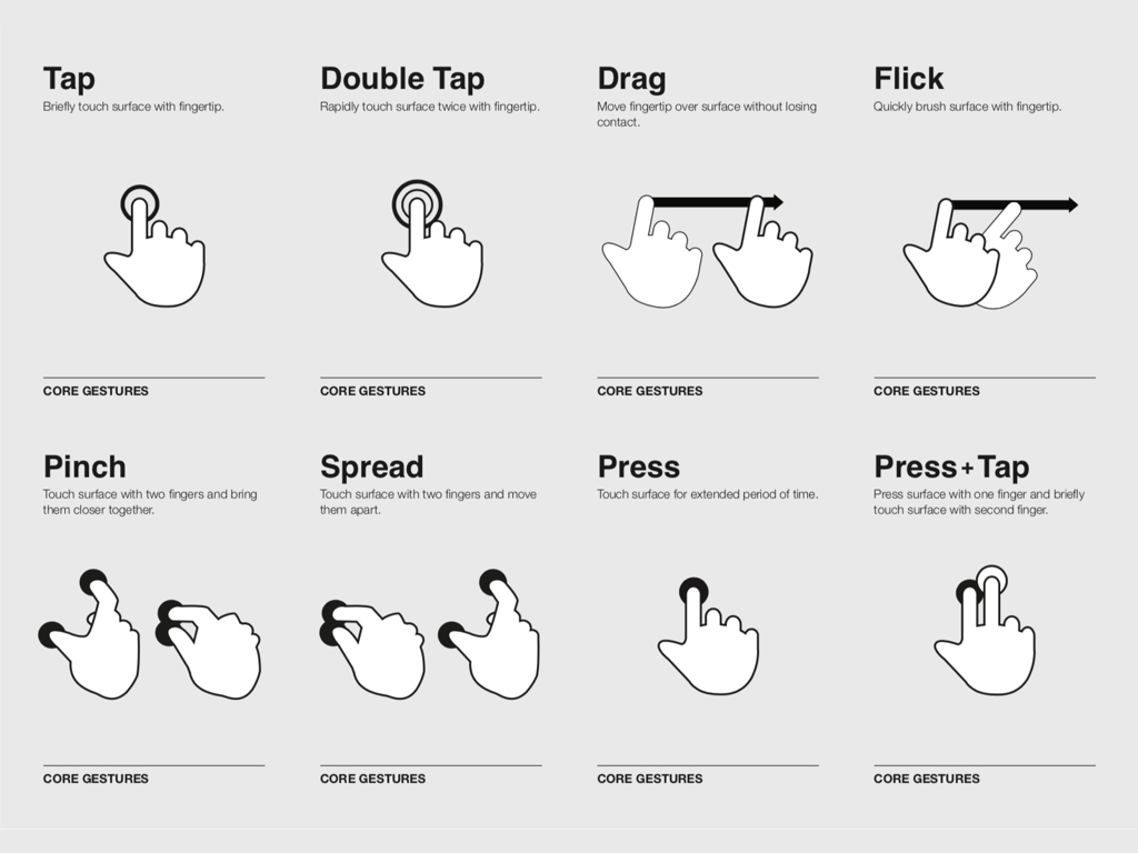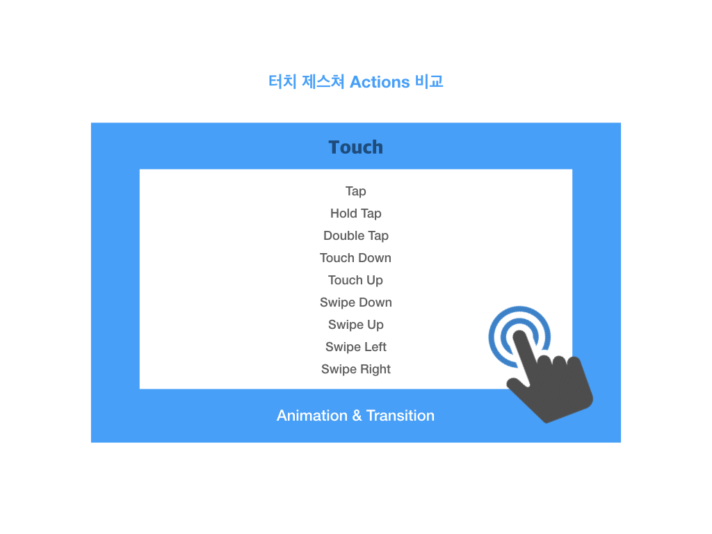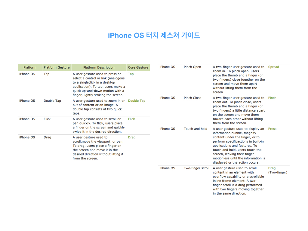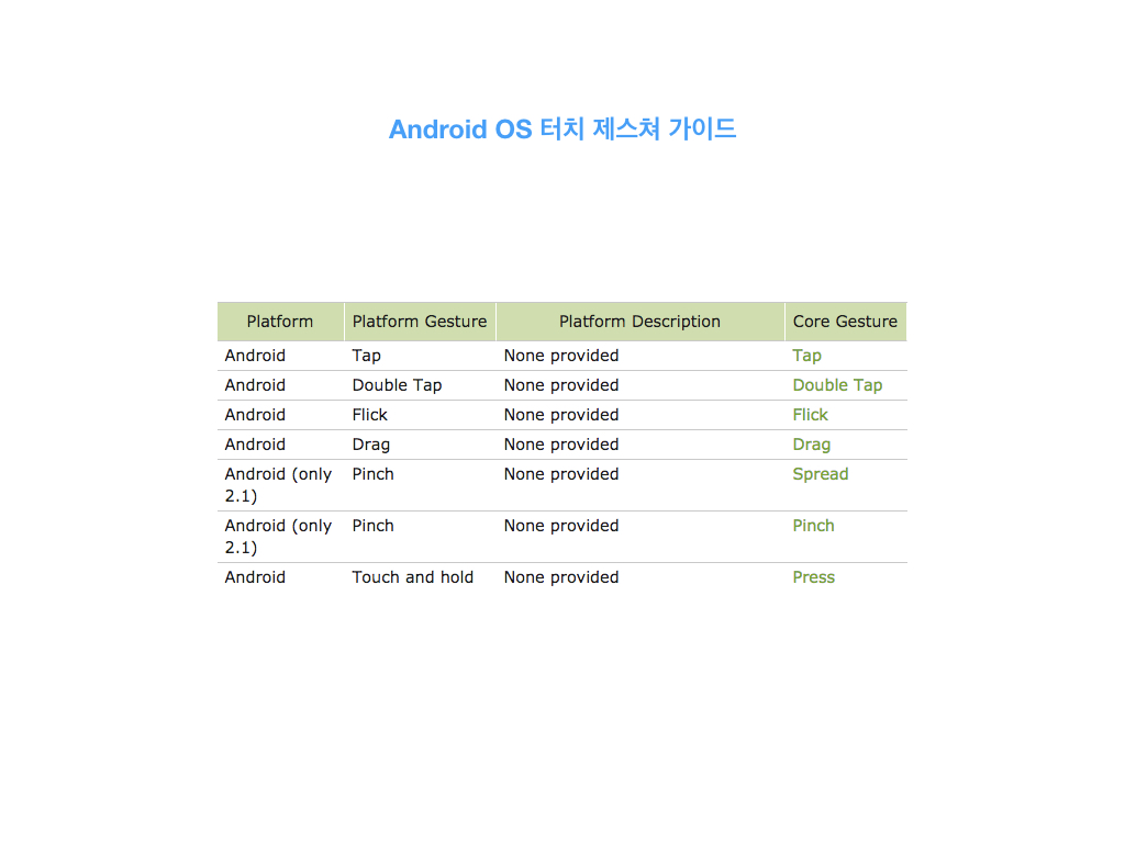 ( 예, Tap, Double Tap, Flick, Drag, Spread, Pinch, Press 등~ )