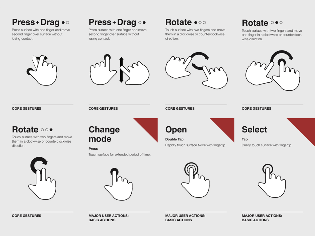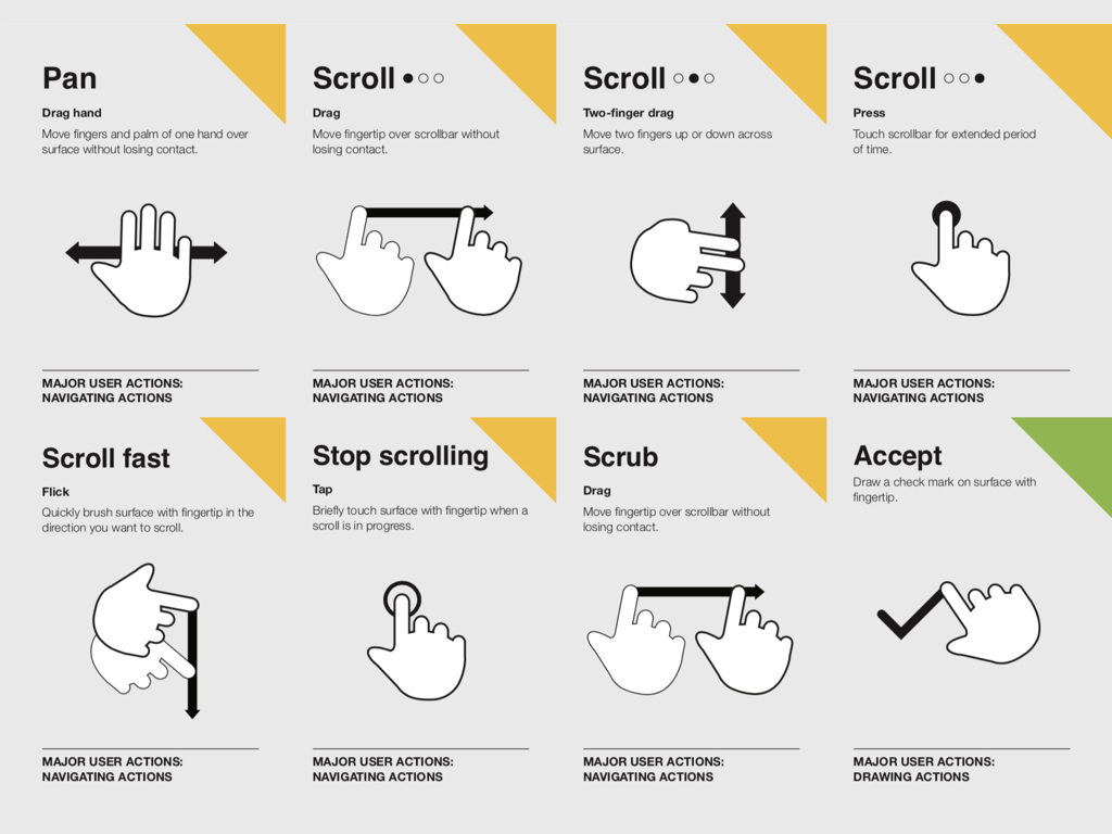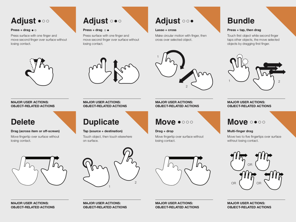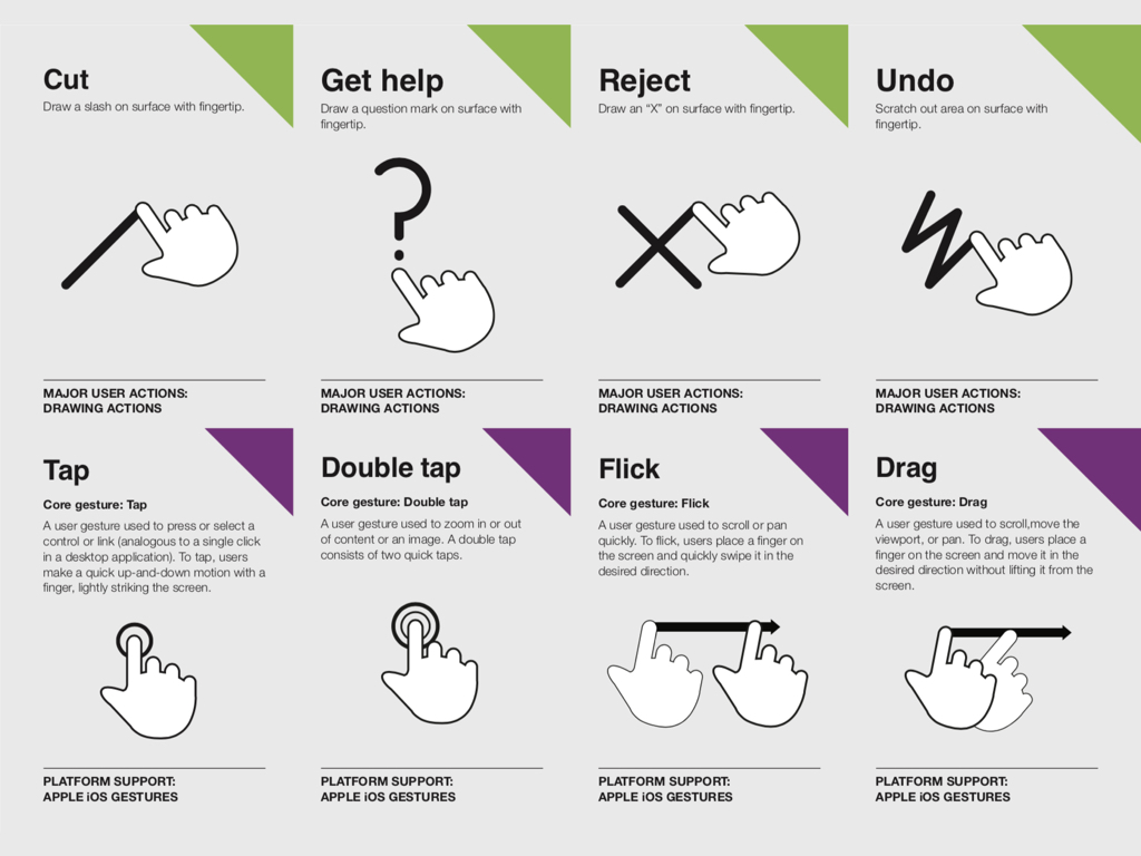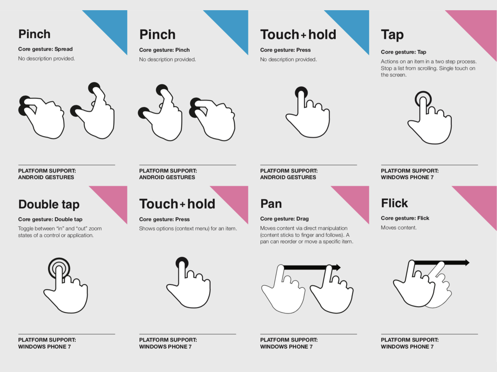 ( 예, Tap, Double Tap, Flick, Drag, Spread, Pinch, Press 등~ )