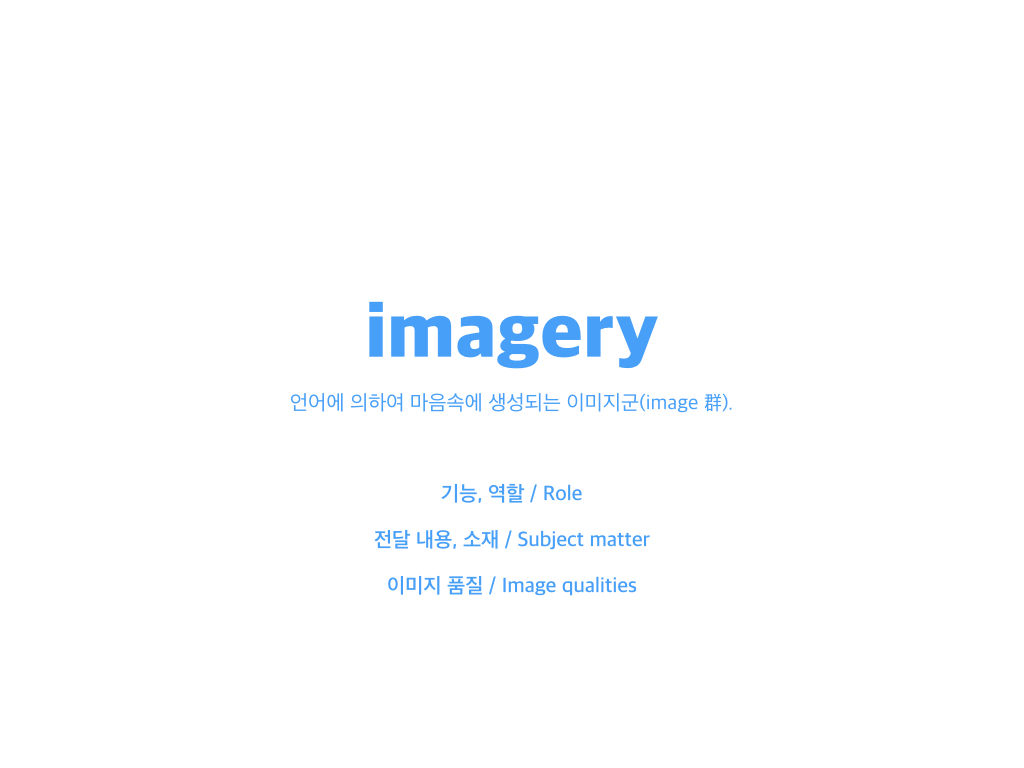 사전적 의미로는 ‘언어에 의하여 마음속에 생성되는 이미지군(image 群)’.