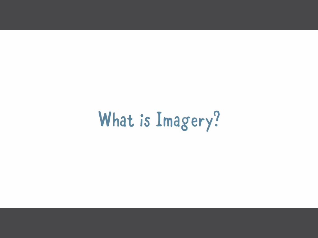 Imagery란 오감에 호소하는 언어와 기술에 사용되는 문학적 용어이다. 디자이너가 냄새, 시력, 맛, 촉감 또는 청각에 호소하도록 무언가를 기술하려고 하면 Imagery를 사용한다. 디자이너가 비교를 사용하여 감각에 호소하기 때문에 종종 Imagery는 직유 또는 은유와 같은 다른 문학적 장치를 기반으로 구축된다.