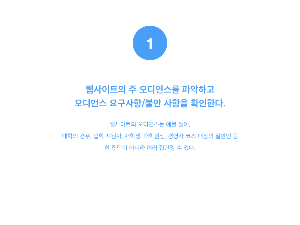 - 웹사이트의 주 오디언스를 파악하고 오디언스 요구사항/불만 사항을 확인한다.