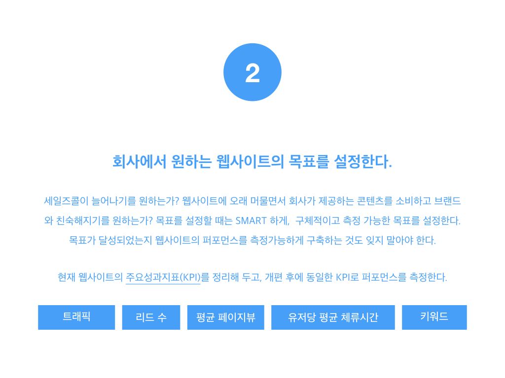 - 회사에서 원하는 웹사이트의 목표를 설정한다.