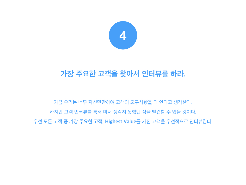 - 가장 주요한 고객을 찾아서 인터뷰를 하라.
