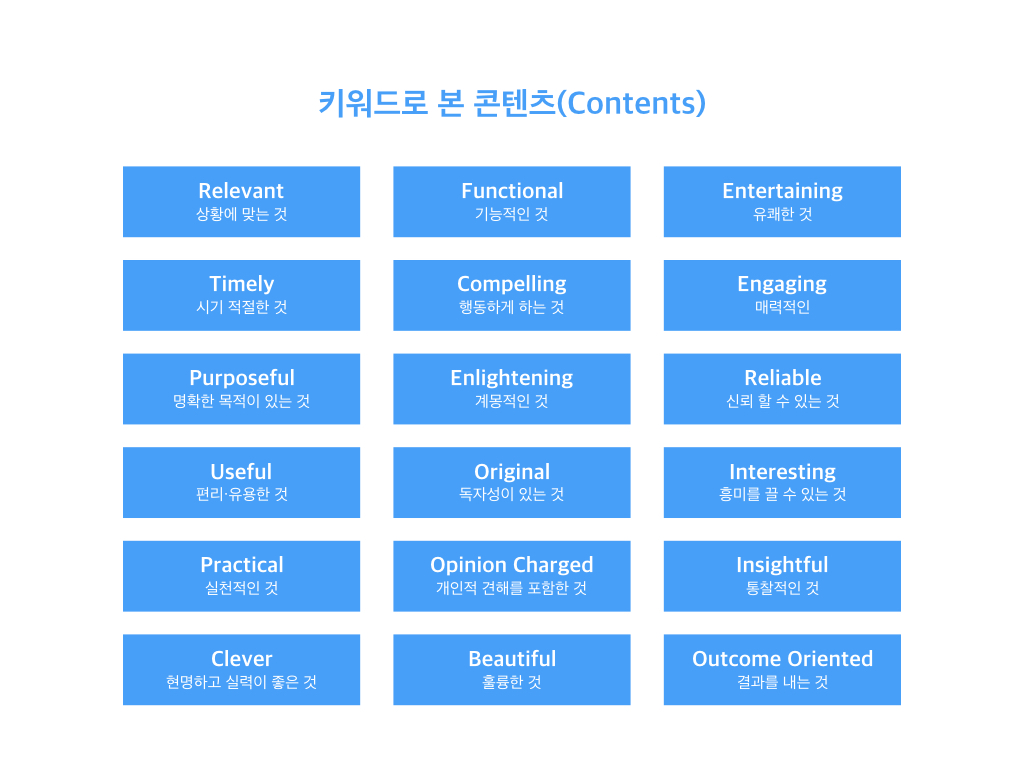 - 직관성(Intuitive) : 사이트에 들어와 5~10초 이내에 무엇을 어떻게 해야할지 결정을 도와줌.