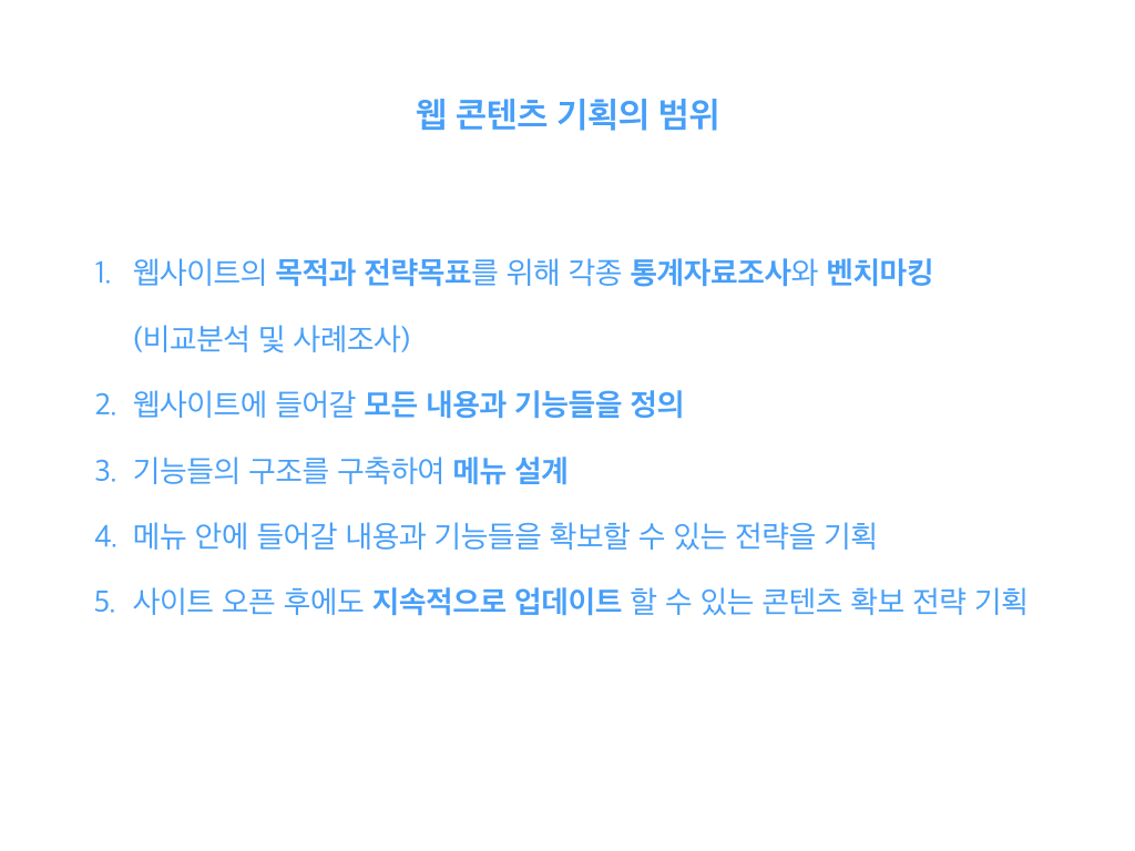 - 사이트 오픈 후에도 지속적으로 업데이트 할 수 있는 콘텐츠 확보 전략 기획