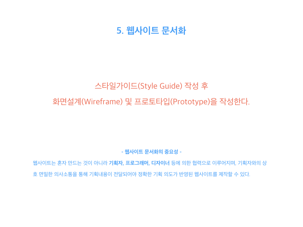 - 웹사이트 기획의 실무적인 부분의 시작이며, 웹사이트가 구체화되고 현실화되는 시점
