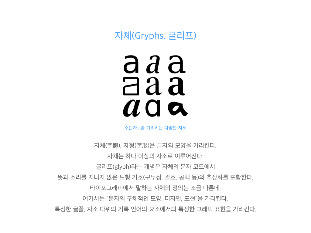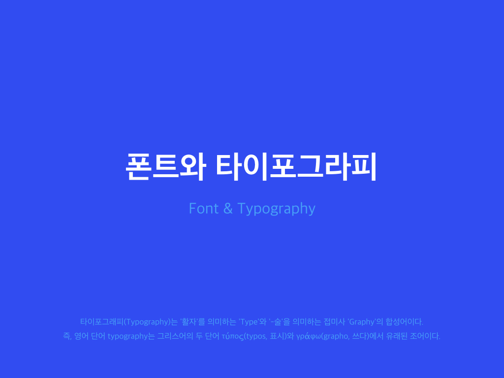 타이포그래피는 문자 배열, 문자 디자인과 문자 상형을 수정하는 기술과 예술이다. 상형문자는 창조되고 다양한 일러스트레이션 기법으로 수정된다. 글자의 정돈은 서체의 선택, 포인트 사이즈, 선 길이, 선 간격, 문장 사이의 간격 맞춤과 단어 사이의 간격 맞춤을 포함한다.