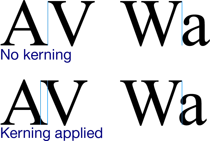 로마자의 경우 글꼴에 따라 특정 알파벳들 사이의 간격이 불규칙해 보이는 정도가 더욱 심하며 커닝을 적용하지 않은 경우 타자기로 친 것처럼 허술해보이는 서체도 많다.