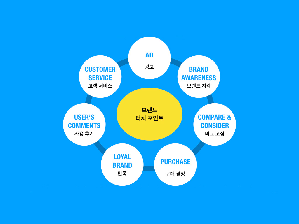 “브랜드 터치 포인트는 브랜드와 소비자가 만나는 접점이다. 사용 경험, 소문, 광고, 패키지, SNS, 블로그, 웹 사이트 등 양방향 소통을 통한 공감대를 형성한다. 브랜드 터치 포인트는 브랜드의 제품 출시 전부터 판매, 사후 관리를 총망라하는 것으로서 브랜드와 소비자 사이의 신뢰, 충성심, 재구매, 인지도 상승효과를 불러일으킨다.”