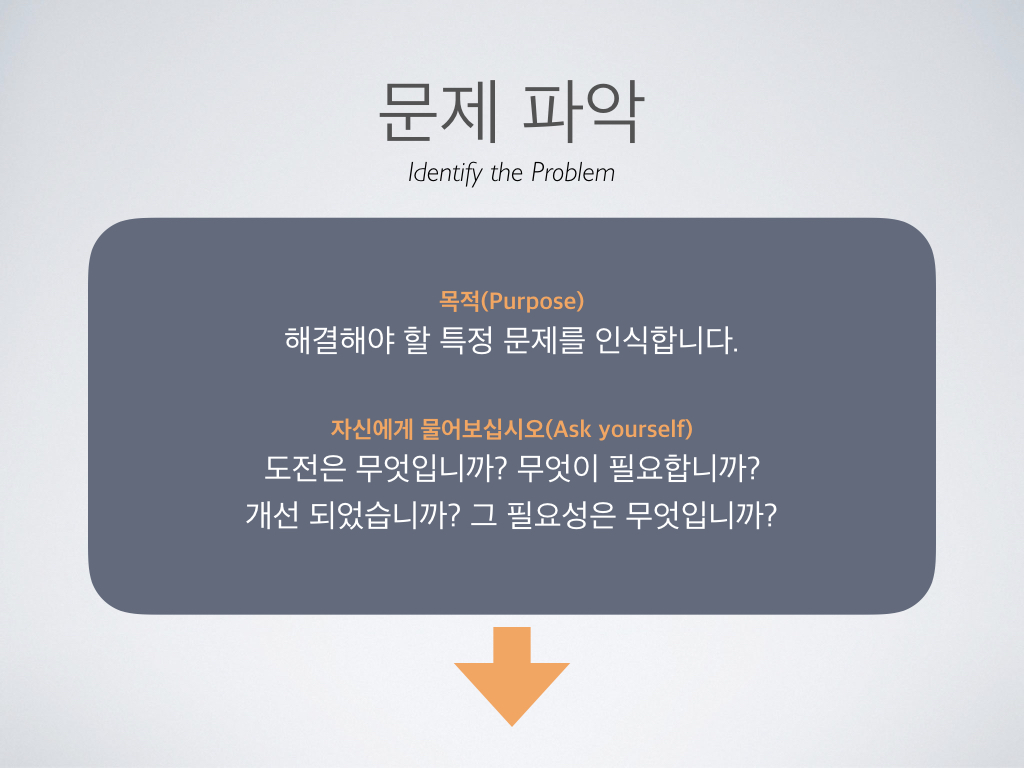 각 활동에서 연구 단계에는 질문 : 설계 제약 조건은 무엇인지? 이 질문은 개발자들이 솔루션의 한계를 인식하고 비효율적이거나 비용이 많이 드는 또는 물리적으로 불가능한 솔루션을 제거하는 데 도움이 된다.