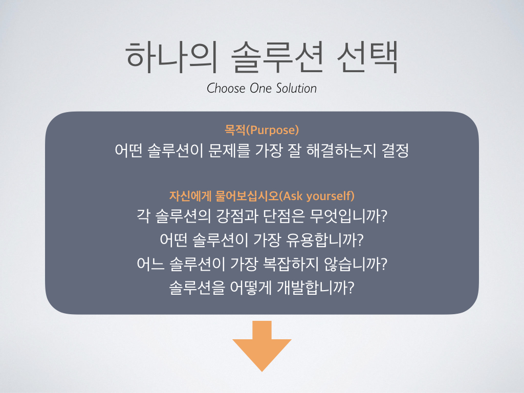 이 단계에서 개발자들은 제안된 디자인 중 하나를 선택하고 자세히 설명한다. 그들은 자신의 디자인을 그리거나 그려 내기 위해 왜 그들이 그것을 선택했는지 설명해야 할 것이다. 각 가능한 솔루션에 대해 최대한 많은 정보를 갖고 문제 또는 작업을 염두에 두면 성공적인 설계를 선택하는 데 도움이 된다. 선택한 디자인은 개발자들이 가장 필요하다고 생각하는 해결책을 나타내야 하거나 디자인 과정 초기에 확인된 문제를 해결해야 한다.