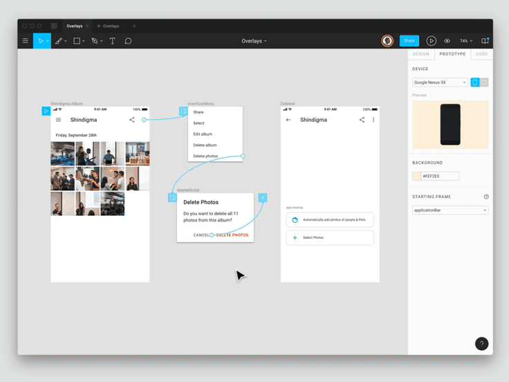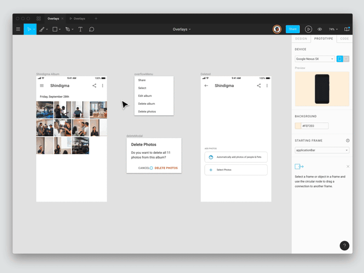 오늘날의 인터페이스를 위한 디자인은 서로 연결된 정적 화면 그 이상이다. 또한 디자이너는 종종 사용자 테스트와 같은 활동을 위해 이러한 대화식 흐름을 경험해야 하기 때문에 프로토타입을 만들어 디자인을 구현한다. 그러나 프로토타입을 만드는 과정은 종종 반복적이고 시간이 오래 걸리며 매우 고통스럽다. 특히 디자이너가 Sidebar, Modal 및 Popover와 같은 요소를 모방하기 위해 다른 콘텐츠 위에 콘텐츠를 표시하려는 경우에 특히 그렇다.