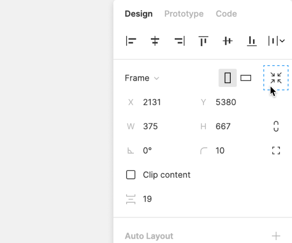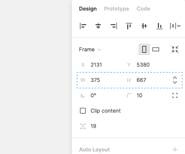 - 디자인의 프로토타입을 만들 준비가 되면 오른쪽 사이드바 의 Prototype 탭으로 이동 한다.