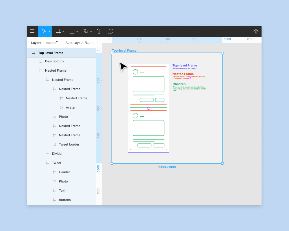 - 디자인의 프레임에 대화형 구성 요소의 인스턴스를 추가한다.