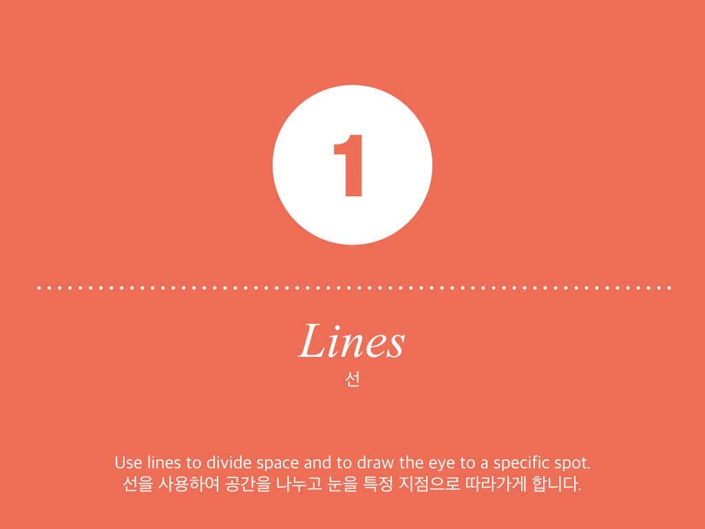 선을 사용하여 공간을 나누고 눈을 특정 지점으로 따라가게 한다.