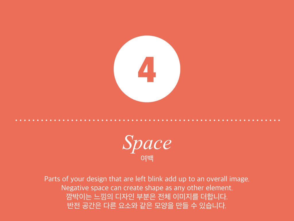 깜박이는 느낌의 디자인 부분은 전체 이미지를 더한다. 반전 공간은 다른 요소와 같은 모양을 만들 수 있다.