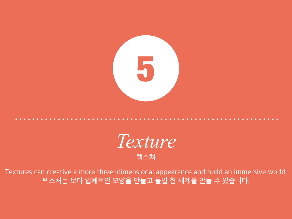 텍스처는 보다 입체적인 모양을 만들고 몰입 형 세계를 만들 수 있다.