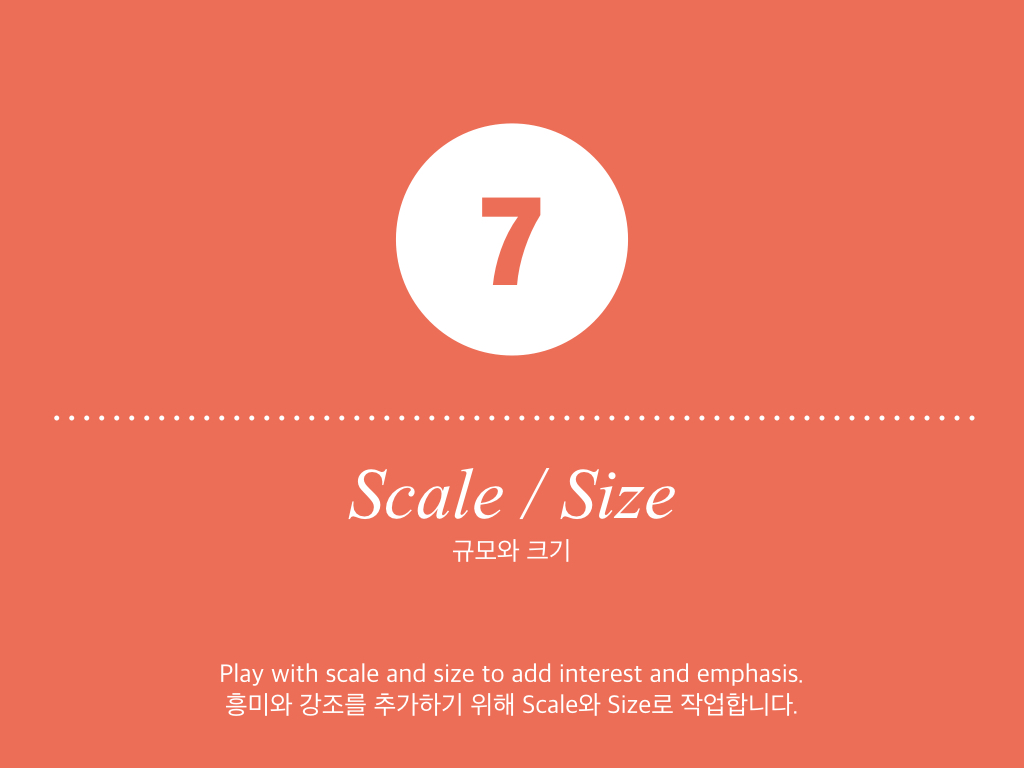 흥미와 강조를 추가하기 위해 Scale와 Size로 작업한다.