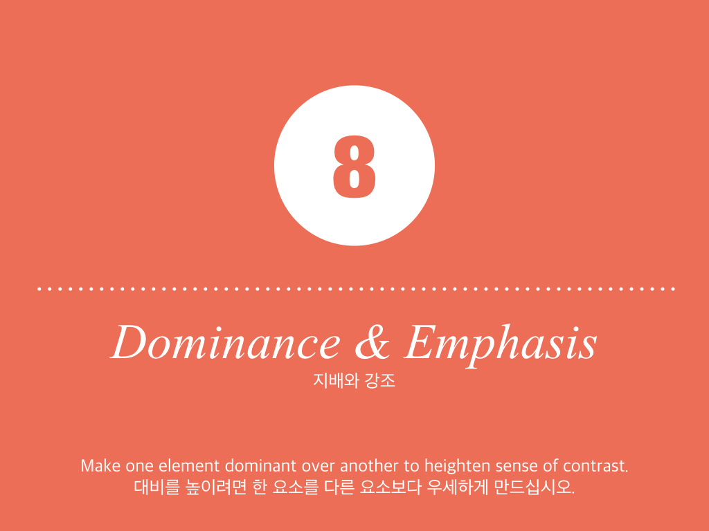 대비를 높이려면 한 요소를 다른 요소보다 우세하게 만들 수 있다.